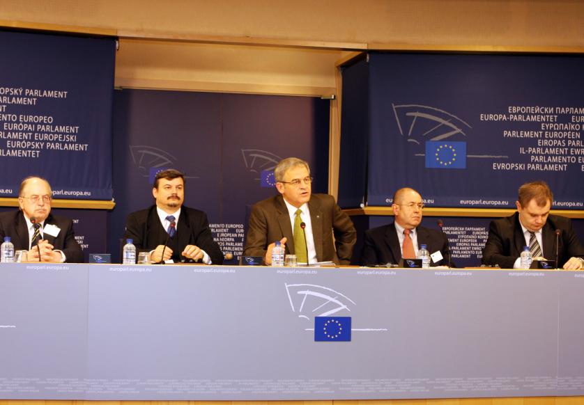 l-r: Mario Mauro MEP, Head of the Italian Delegation (PDL) of the EPP Group in the European Parliament, Salvatore Iacolino MEP (EPP Group, Italy), Vice-Chairman of the Committee on Civil Liberties, Justice and Home Affairs of the European Parliament, and Vito Bonsignore MEP (Italy), Vice-Chairman of the EPP Group