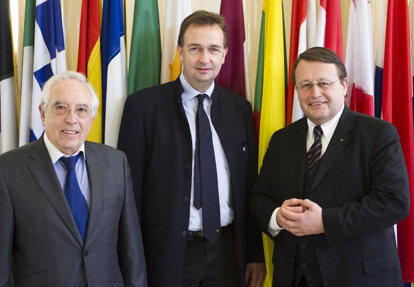 r-l: Paul Rübig MEP (EPP Group, Austria), Chairman of the Working Group, Karl von Habsburg, Chairman of the Association of National Committees of the Blue Shield, and Alain Terrenoire, President of the International Paneuropean Union and former MEP