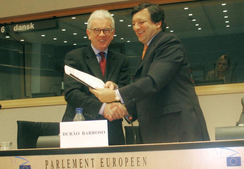 l-r: Hans-Gert Poettering, Chairman of the EPP-ED Group in the European Parliament, and José Manuel Durão Barroso, President-elect of the European Commission