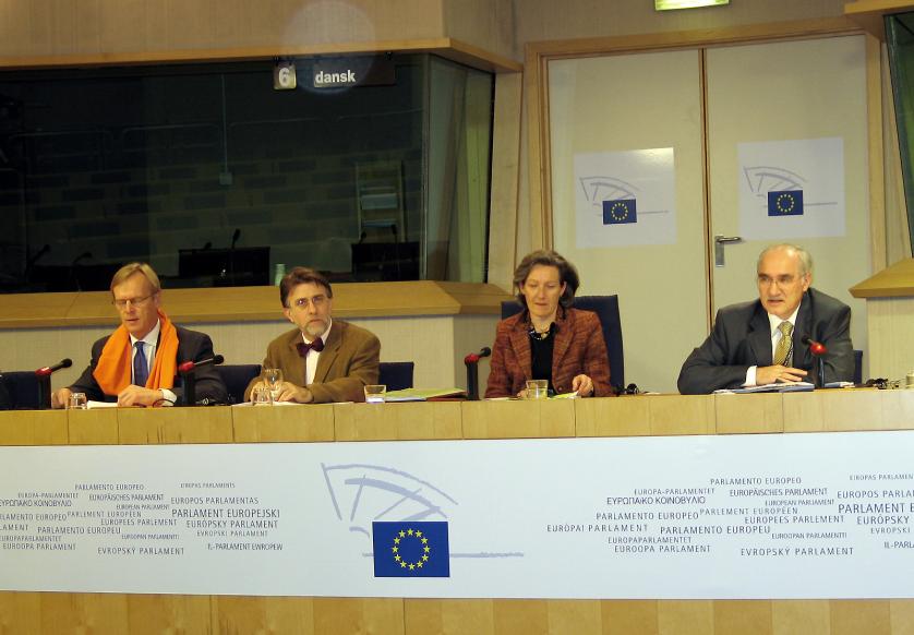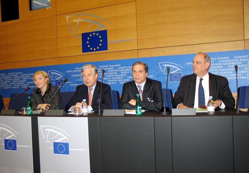 l-r: Ari Vatanen MEP (EPP-ED, France), Bernard Biro, Lawyer at the Paris Bar representing 'Advocates France', Elisabeth Montfort (former MEP in the EPP-ED Group, France) and Miroslav Mikolášik MEP (EPP-ED, Slovakia)