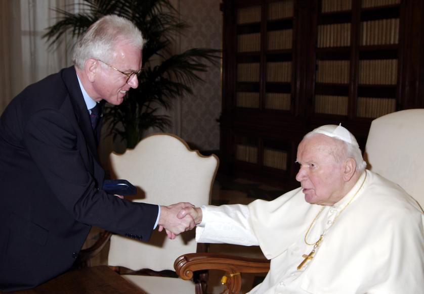 Hans-Gert Poettering, Chairman of the EPP-ED Group in the European Parliament, presenting the Robert Schuman Medal to His Holiness Pope John Paul II in honour of his outstanding contribution to the integration of Europe