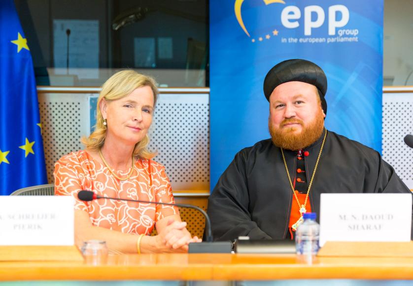 Annie Schreijer-Pierik MEP (EPP Group, The Netherlands) and His Eminence Mor Nicodemus Daoud Sharaf, Syriac Orthodox Archbishop of Mosul
