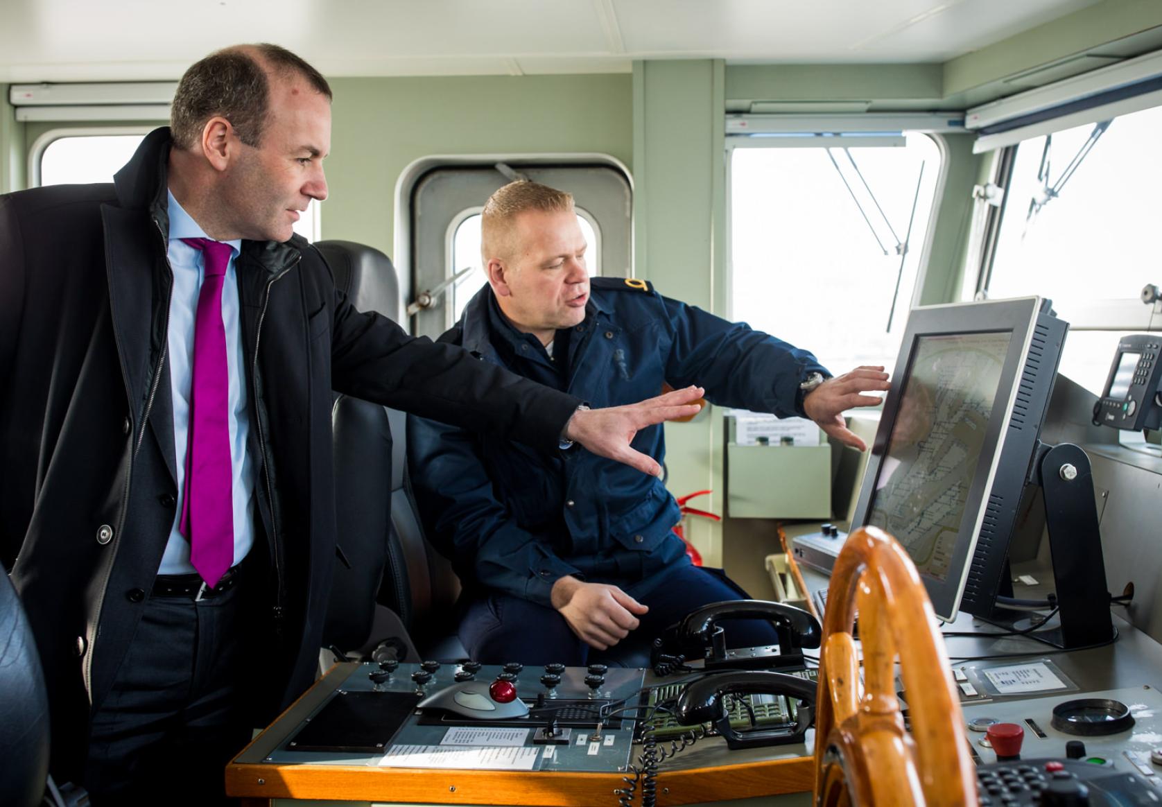 Visit to the port of Rotterdam. Manfred Weber MEP (Germany), Chairman of the EPP Group in the European Parliament (on the left)