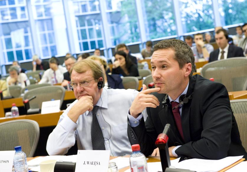 Jaroslaw Leszek Walesa MEP (EPP Group, Poland) (on the right) and Struan Stevenson MEP