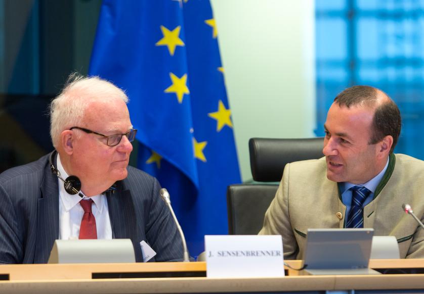 Manfred Weber MEP (Germany), Chairman of the EPP Group in the European Parliament (right), greets US Congressman Jim Sensenbrenner at the award ceremony of the Schuman Medal