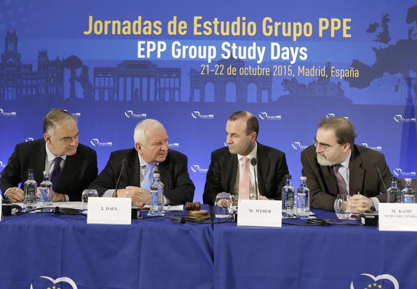 l-r: Esteban González Pons MEP (Spain), Vice-Chairman of the EPP Group in the European Parliament, Joseph Daul, President of the European People's Party, Manfred Weber MEP (Germany), Chairman of the EPP Group, and Martin Kamp, Secretary-General of the EPP Group